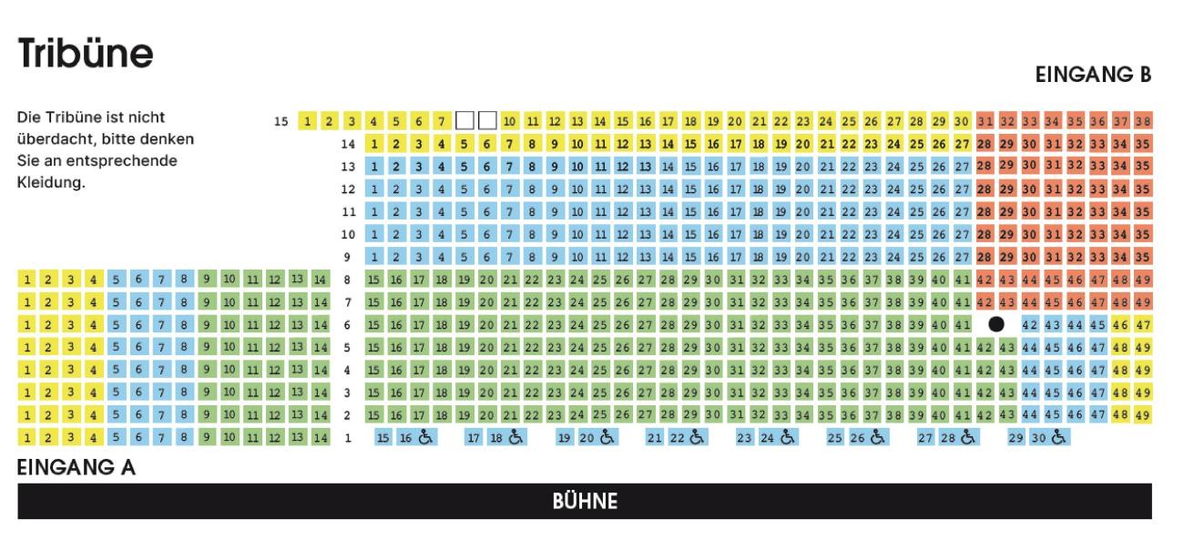 Die Mitarbeiter*innen der Theaterkasse stehen Ihnen gerne für Rückfragen zur Verfügung. Rollstuhlfahrende können im Webshop direkt in der Kategorie „Rollstuhlplätze“ ein Ticket kaufen. Ein Sitzplatz für die Begleitperson ist inklusive und muss nicht angemeldet werden.